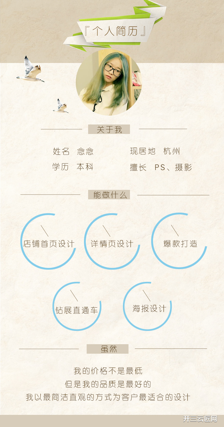 一只热爱生活热爱设计的单身狗。有经验,爱创新!性格虽不能多变,但风格绝对多样化,任君挑选~